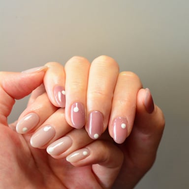 お爪の形を綺麗に整えてから、手をお湯に浸けて柔らかくなった状態で甘皮まわりを綺麗にします。仕上げは磨きかベースコート仕上げお選びいただけます